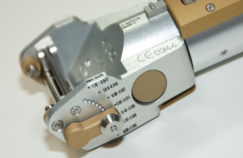 – Greft kalınlığı 0.0-1.2 mm arasında değişir ve istenen kalınlık ayarlama kolu ile cihaz üzerindeki ölçekten ayarlanır ve sabitlenir. Ayarlama kolunda yaklaşık 0.1 mm aralıklarla kalınlık ayarı yapılabilir. Ayarlama kolunun sabitlenmesi sayesinde operasyon sırasında greft kalınlığının yanlışlıkla değişmesi önlenmiş olur.